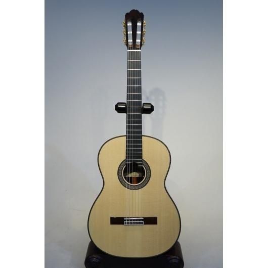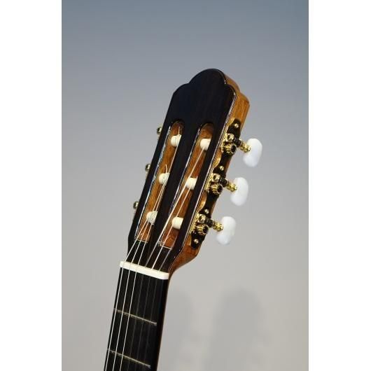 このモデルはAシリーズの上級モデルでオール単板仕様です。上質なペグ、ウッドバインディングの採用など細かな点にもこだわった造り。表板がスプルースで、クリアな音が魅力です。
